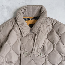 クラシックな印象でカジュアルになりすぎない、ミリタリー仕様のダブルブレストダウンコートです。