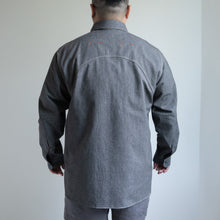一般的なシャツは背ヨークの部分のみが2枚の生地が重なっていますが、本製品はアームホール全周から肩、背にかけて生地が2枚重ねになった特徴的な構造になっています。こうして上半身で最も運動量の大きい両腕を中心とした部分ががっちり補強されている訳です。