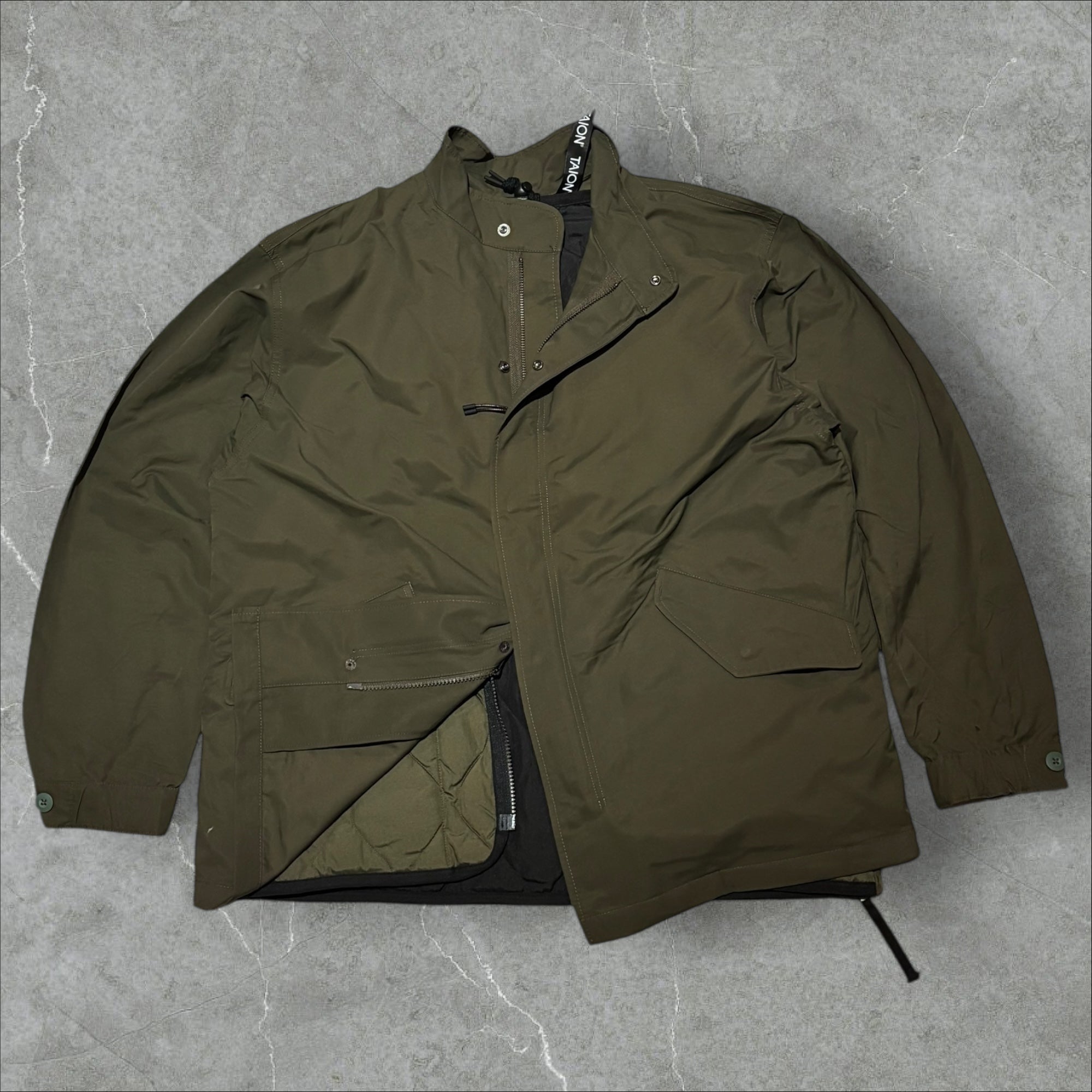 ショート丈のモッズジャケット(アウター)と、ミリタリーダウンベスト(ライナー)を組み合わせた、
