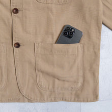 オーガニックコットンを使用したコットンの三つボタンジャケット。